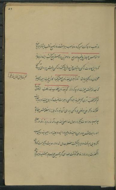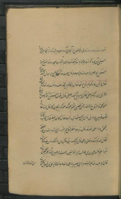 نستعلیق رضاقلی تاریخ نویس در ۱۲ رمضان ۱۲۶۸ق در قریه ای در شمیران، برگ نخست دیباچه افتاده، عنوان و نشان به شنگرف، ۱۲۱گ، ۱۱ س، کاغذ فرنگی، قطع رُبعی، ؟/؟؟×؟/؟؟ سم، رکابه دار، جزوهای ۸ برگی، جلد تیماج مشکی لایی با آستر کاغذ زرد.