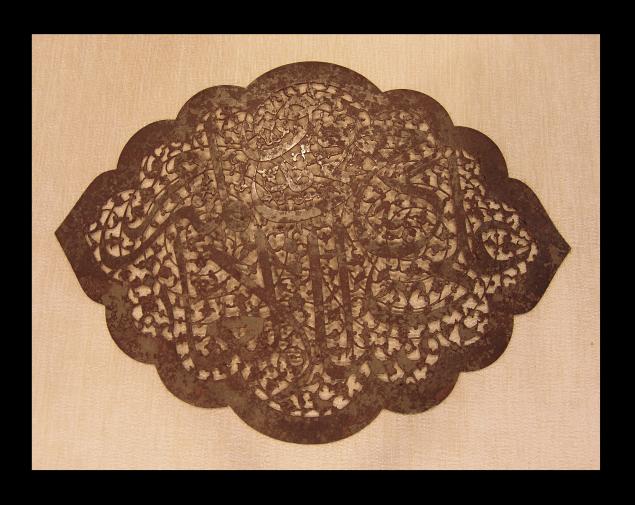 دور تا دور اثر حاشیه ساده و بدون تریینات دارد. درون حاشیه تزیینات مشبک کاری و گیاهی به چشم می خورد و به خط ثلث نوشته شده است: سلام علی نوح فی العالمین