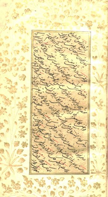 تالیف نصیر الدین محمد بن محمد بن حسن طوسی، در اخلاق به نام محمد بن بهاءالدین محمد جوینی نوشته شده، شکسته نستعلیق چلیپا ی محمدکاظم اصفهانی در رجب 1060 در دارالسلطنه ی حیدرآباد، با سرلوح گل و بوته های زرین و سفیداب و مشکی و سبز و لاجورد و شنگرف، جدول مشکی و زرین حواشی آراسته با نقوش زرین،عنوان و نشان شنگرف، جدول زر در تمام صفحات، در تاریخ 1255 داخل کتابخانه شد با امضاء سلطان مراد، کاغذ متن ترمه زر افشان و حاشیه آهار مهره ی فرنگی و ترمه انداز، در34 برگ 13 سطری به چلیپا نوشته شده است. جلد ساغری مشکی مقوایی.