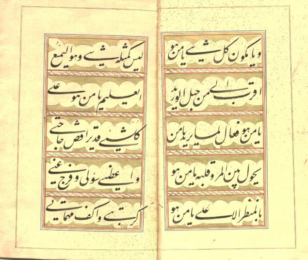 تالیف خواجه نصیر طوسی، نستعلیق درشت ابراهیم بن احمد در سده 13، دارای جدول و کمند به زر و شنگرف، طلا اندازی بین خطوط، دارای سرلوح به سبز و لاجورد و زر و شنگرف، بر کاغذ آهار مهره ی فرنگی زرافشان در 37 برگ 5 سطری نوشته شده، جلد اثر روغنی با تزیینات گل و بوته است.