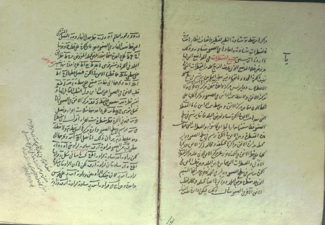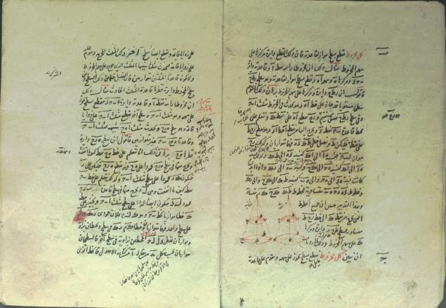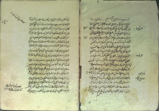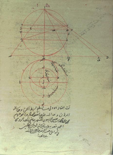 تالیف محمود بن محمد بن موسی برسوی معروف به قاضی زاده رومی، تالیف اوایل رجب 892در شهر ادرنه، نسخه پایان مقاله ی اولای کتاب در برهان است و در آن از ابی منصور عیسی بن عثمان و کتاب های بطلمیوس فلوذی در تسطیح کره و شرح اسکندرانی و حبش حاسب و کتاب علل فرغانی و جز آنها در دیباچه یاد میکند،نستعلییق سده 9و10، عنوان و نشان و اشکال هندسی و هیوی و ریاضی به شنگرف، یادداشت تملک لطفعلی بن محمد کاظم به تاریخ جمادی الاول 1321 و مهر و یادداشت تملک حاج حسین ملک در صفحه عنوان به تاریخ رجب 1360، بر کاغذ ترمه در 17 برگ 17 سطری نوشته شده، جلد میشن لایی مشکی است.
