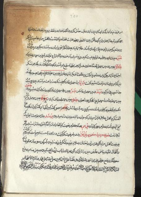 تالیف ملامحمدتقی تبریزی به نام شاه عباس و میرزا محمد ابراهیم بن صدرالدین، نسخ احمد بن زین العابدین در 1238، عنوان و نشان شنگرف، یادداشت تملک به این صورت« باریخ تملک باجم[؟] دختر سردارباشد شانزدهم شعبان المعظم مبلغ تملک سی و چهار تومان است»، بر کاغذ پسته ای در 129 برگ 17 سطری نوشته شده، جلد اثر میشن مشکی لایی است.
