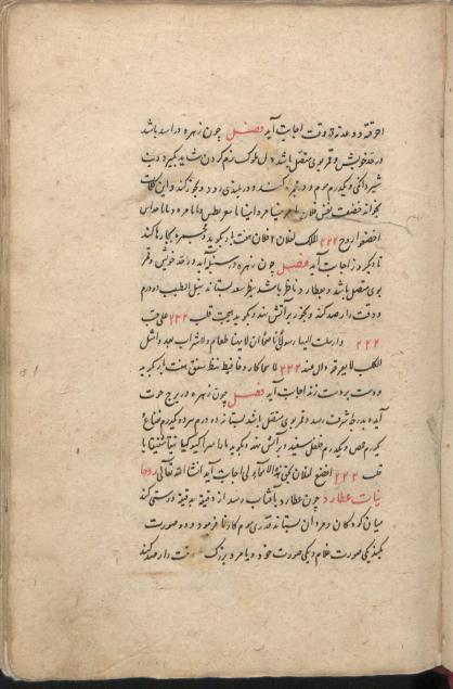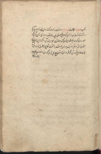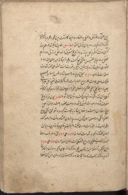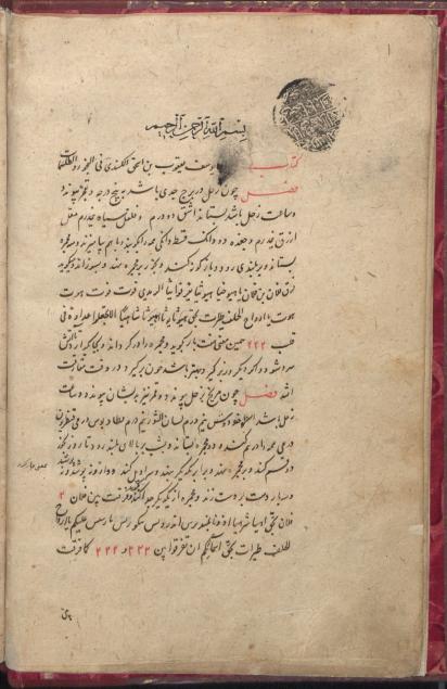 تالیف ابویوسف یعقوب بن اسحق کندی، نستعلیق سده 10، عنوان و نشان شنگرف، یادداشت تملک علیرضا بن محمد غفاری کاشانی به تاریخ جمادی الاول 989، بر کاغذ ترمه در 6 برگ 17 سطری نوشته شده، جلد اثر رویه کاغذی و عطف میشن سرخ نو است.