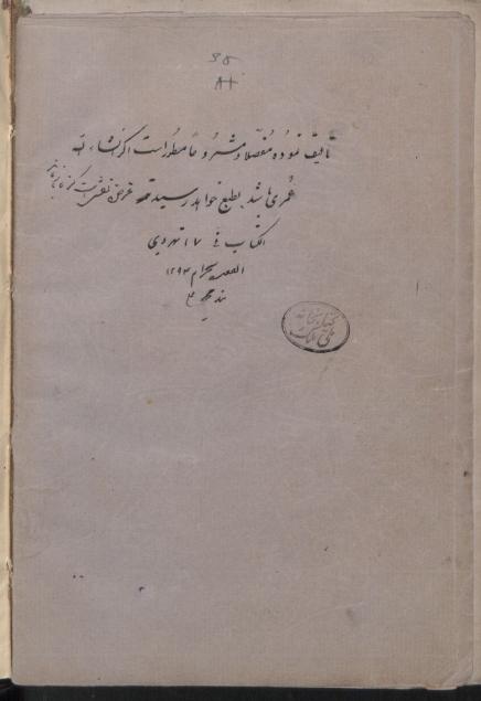 تالیف حاج میرزا محمد مهندس، نستعلیق محمدعلی در 17 ذیقعده 1294، تصحیحات مولف در هامش، بر کاغذ فرنگی آبی در 33 برگ 11 سطری نوشته شده، جلد اثر میشن قهوه ای لایی است.