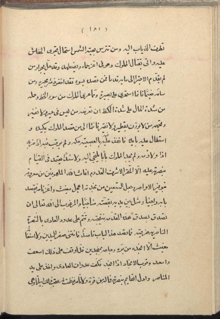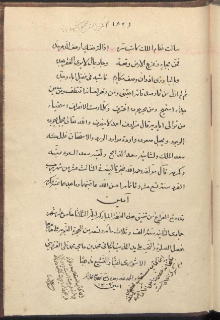 تالیف شهاب الدین ابوالعباس احمد بن علی قلقشندی مصری که برای نظام الملک محمد جهینی بارزی شافعی مویدی در 13 رجب 819 ساخته، نسخ محمد بن محمد قلی قزوینی آشوری شیعی در 1309 برای کتابخانه ی عمادالسلطنه، عنوان و نشان شنگرف، در پایان نسخه دو یادداشت وجود دارد که در یکی اجرت کتابت نسخه که دو تومان و پنج هزار است ثبت شده، بر کاغذ آهار مهره فرنگی در 91 برگ 16 سطری نوشته شده جلد اثر میشن بنفش لایی است.