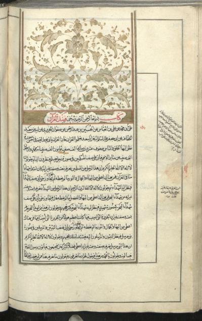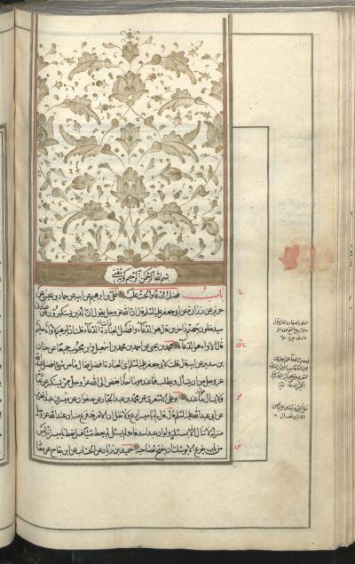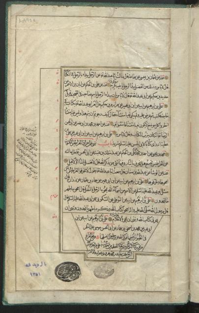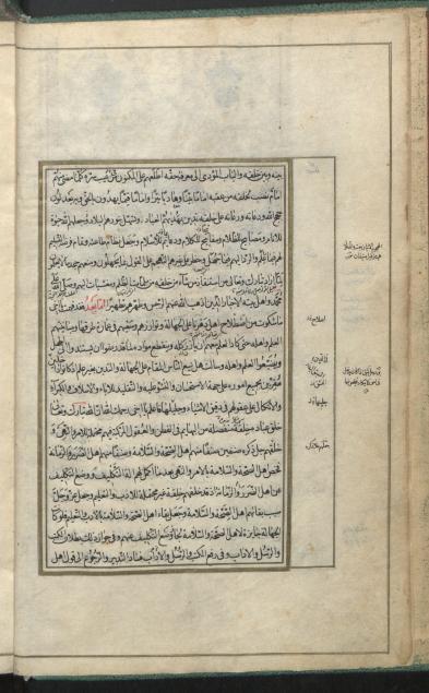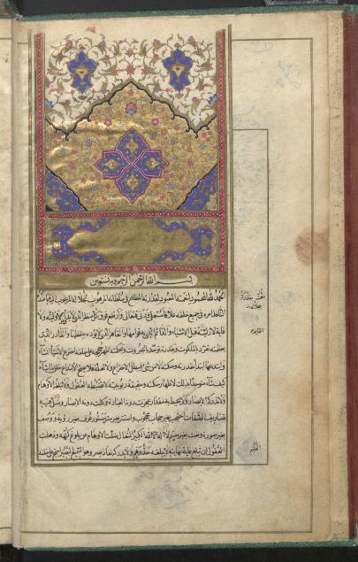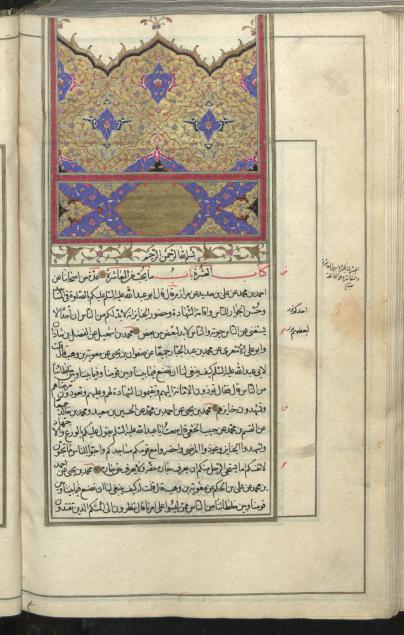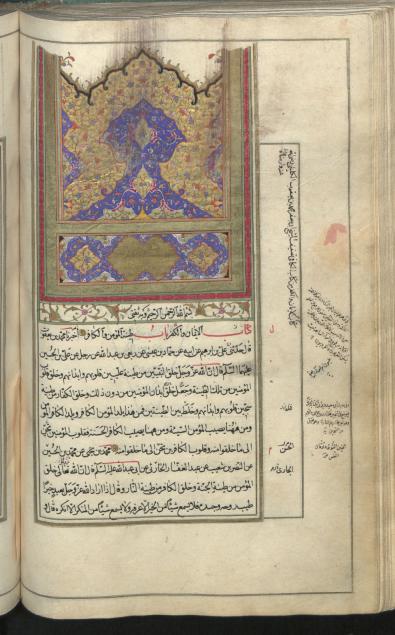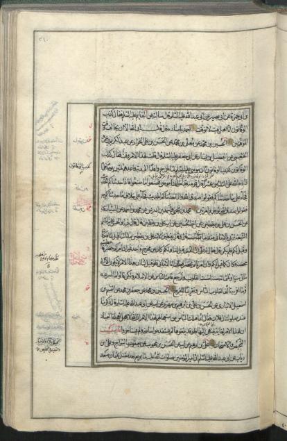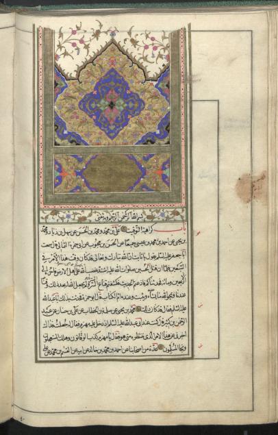 تالیف شیخ ابوجعفر محمّد بن یعقوب بن اسحاق رازی معروف به کُلِـینی، شیخ کلینی، ثقهالاسلام کلینی مشهورترین فقیه و محدث شیعه در نیمه اول قرن ۴، نسخ محمد بن حاج ملک حیدر هروی در شعبان 1094، عنوان و نشان شنگرف با 5 سرلوح، دارای کمند و جدول به زر، حاشیه نویسی، با تملک 1097 و تملک فرهادمیرزا در 25 محرم 1285 و سلطان محمد بن عماد الدوله در 1293با مهر، از آغاز اصول تا پایان العشره، بر کاغذ ترمه در 485 برگ 19 سطری نوشته شده، جلد اثر ساغری سبز سرطبله دار با قفل فلزی است.