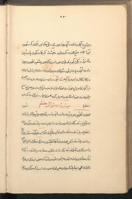 تالیف آقاعلی مدرس تهرانی فرزند ملا عباس مدرس زنوزی تبریزی که به نام ناصر الدین شاه و برای اعتمادالدوله بدیع الملک میرزا در 5 جمادی الثانی 1307 تالیف شده و جواب هایی است که در هفت مسئله ی سوال شده ی بدیع الملک در مباحث معقول به او داده است، نسخ 20 شوال 1308، عنوان و نشان شنگرف، یادداشت خریداری حاج حسین آقا ملک در 1349، بر کاغذ فرنگی در 282 برگ 15 سطری نوشته شده، جلد اثر تیماج قهوه ای طلاکوب است.