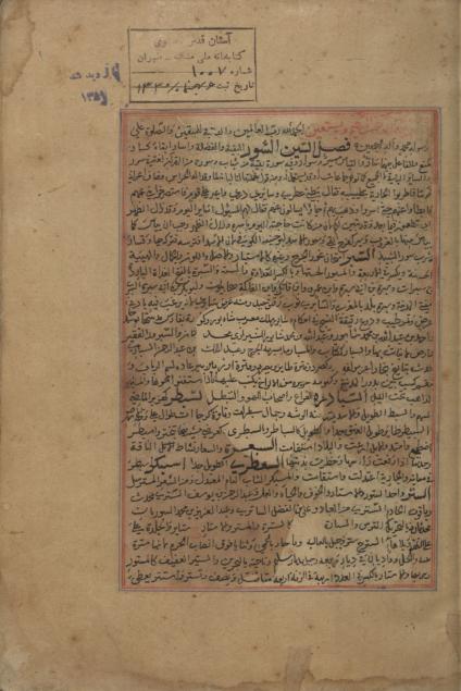 از «فصل السین آخرها الراء» تا کلمه ی «زیر» است اما آشفته، نسخ سده ی 8، در پایان جزو نخست اجازه ی قرائت زین الدین محمد بن علی شیرازی بر مصنف به خط خود مصنف مورخ 14 شعبان 788 و تاریخ تالیف همین جزو در زیحجه 768 آمده است.عنوان و نشان شنگرف، مجدول به شنگرف و لاجورد، دارای یادداشت بلاغ سما مولف، بر کاغذ بخارایی با حاشیه ی ترمه در 241 برگ 29 سطری نوشته شده، جلد اثر تیماج سرخ ساده است.