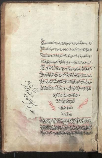 تالیف سعدالدین مسعودبن عمربن عبداللّه هروی خراسانی تفتازانی مشهور به تفتازانی فقیه، متکلم، منطق دان و ادیب ایرانی(۷۲۲-۷۹۲)، نستعلیق کاظم بن محمد جعفر در 1103 با حواشی، نشان شنگرف، دارای یادداشت تملک حاجی مهپحمد جعفر بن کربلایی کاظم هزارجریبی در 1245، بر کاغذ فستقی در 284 برگ 15 سطری نوشته شده، جلد اثر تیماج قهوه ای ضربی است.