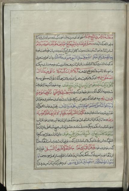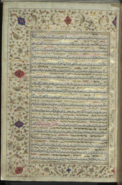 تالیف مهدی بن ابی ذر نراقی معروف به محقق نراقی(۱۱۲۸-۱۲۰۹ق) از علمای شیعه در قرن دوازده و سیزده هجری، نسخ 13 ذیقعده 1239، دارای سرلوح مذهب، حواشی دو صفحه اول تشعیر، طلا اندازی بین سطور در دو صفحه ی نخست، دارای کتیبه در صفحه ی 8، عنوان و نشان شنگرف و لاجورد و زر، با جدول و کمند به زر، بر کاغذ پسته ای در289 برگ 19 سطری نوشته شده، جلد اثر تیماج مشکی ضربی است.