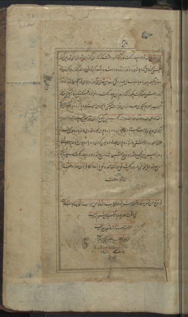 تالیف میرزا رفیع قزوینی متوفی در 1089 از وعاظ معروف بوده، نستعلیق یوسف در رجب 1093، تا آخر باب دوم، دارای سرلوح مذهب، دارا ی جدول، عنوان و نشان شنگرف، یادداشت تولد در 1246 و مهر محمدباقر حسینی، بر کاغذ ترمه در 178 برگ 17 سطری نوشته شده، جلد اثر تیماج قهوه ای است.