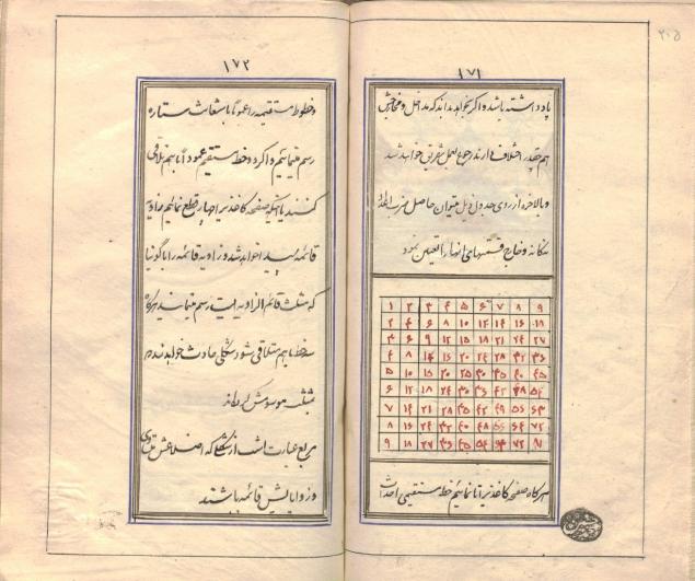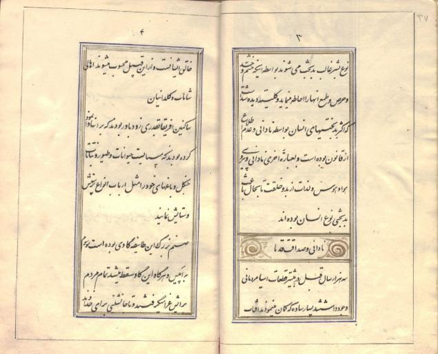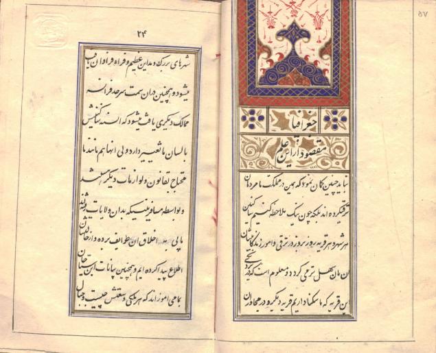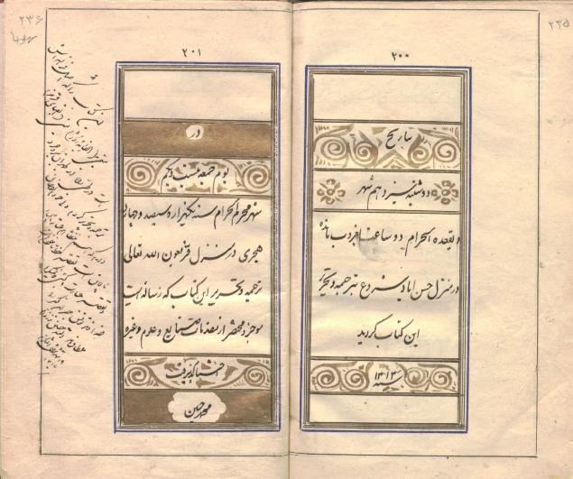ترجمهٔ »حسین» از اصل فرانسه با نام «Alphabet Rouge» در 1313ق، دارای مقدمهٔ مترجم در وصف شهرهای بین طهران تا بروجرد (که کتاب را در این راه ترجمه کرده است)، به خط نستعلیق جمعه محرم 1314ق، تمام صفحات مجدول و کمنداندازی شده، دارای هفت سرلوح مرصّع مذهّب، سرفصل ها کتیبهٔ مذهّب، کاغذ آهارمهره فرنگی و جلد تیماج مشکی با سجاف و لچکی میشن قهوه ای.