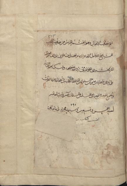 تالیف زمخشری، نسخ ناصرالدین یوسف بن حسام الدین حافظ لارندی در 795، عنوان و نشان و لغات شنگرف، دارای دعای حفظ در پایان نسخه، بر کاغذ دولت آبادی در 303 برگ 9 سطری نوشته شده، جلد اثر تیماج قهوه ای ضربی است.