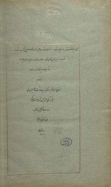 ترجمه مرآةالحرمین قاجاریه صفر 1193 قمری (قرن 12) - 15 شعبان 1342 قمری (قرن 14)