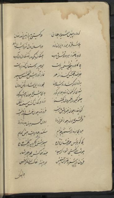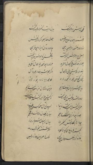 نسخه به خط شکسته نستعلیق اواخر شعبان 1296 از حسین قلی بن مصطفی قلی خان دیوان بیگی متخلص به سلطانی در 95 برگ جلد تیماج زرد لائی کاغذ فرنگی آهار مره با مهره بیضی الراجی الی رحمه الله حسین قلی