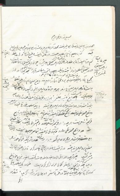 دارای خط خوردگی و حواشی، کاغذ امتحانی خط دار، رکابه دار، 114برگ یک رو، مختلف السّطور، قطع وزیری بزرگ، جلد گالینگور مشکی نو.