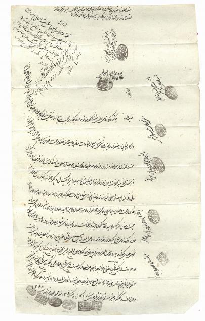 دارای کاغذ کرم رنگ و 13 مهر بر روی سند