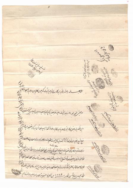 دارای کاغذ کرم رنگ و 11 مهر بر روی سند