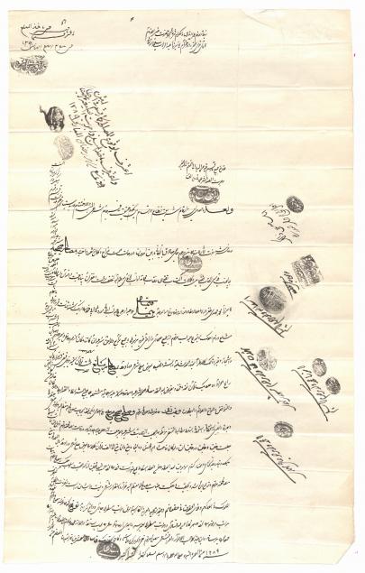 دارای کاغذ کرم رنگ و 13 مهر بر روی سند