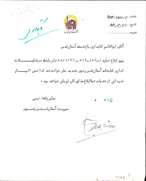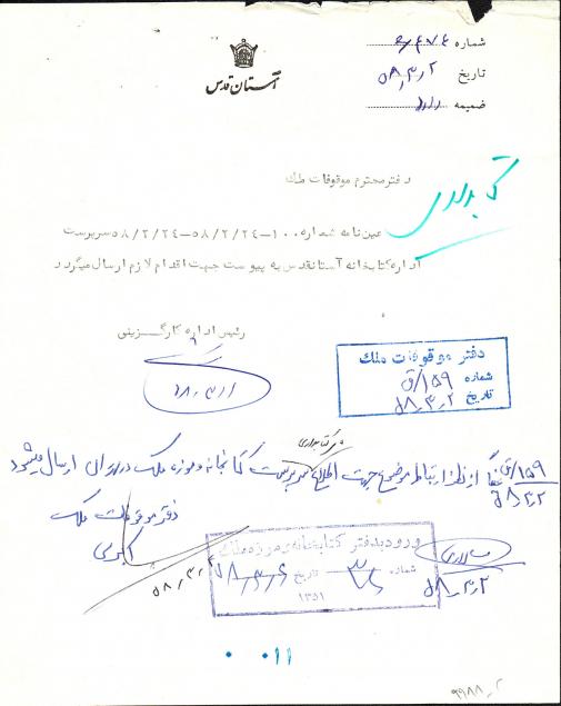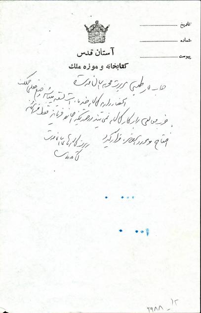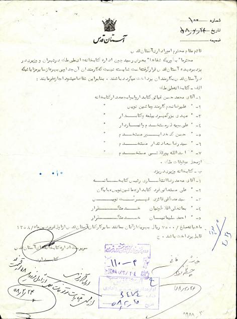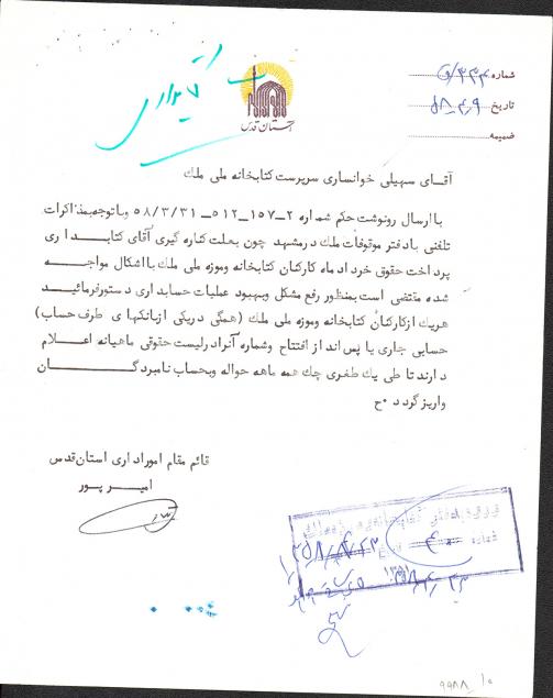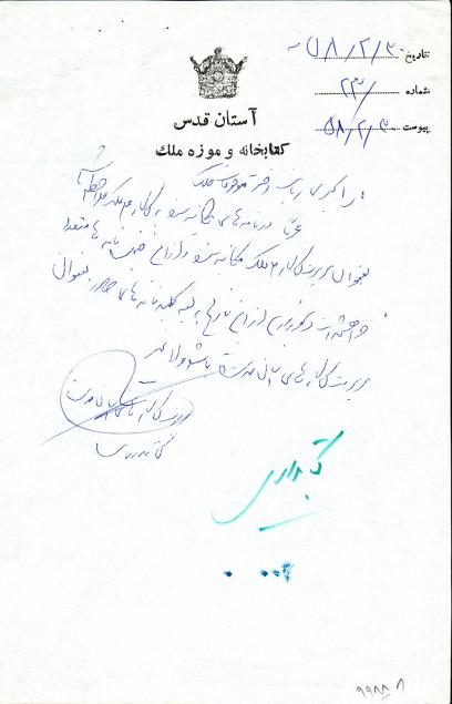 مکاتبات کتابداری سرپرست اداره کتابخانههای آستان قدس رضوی