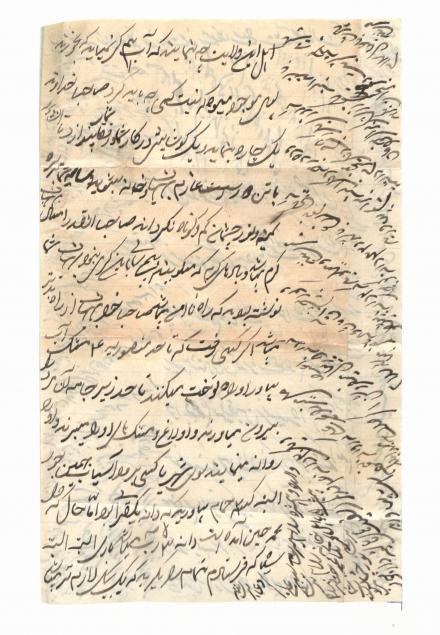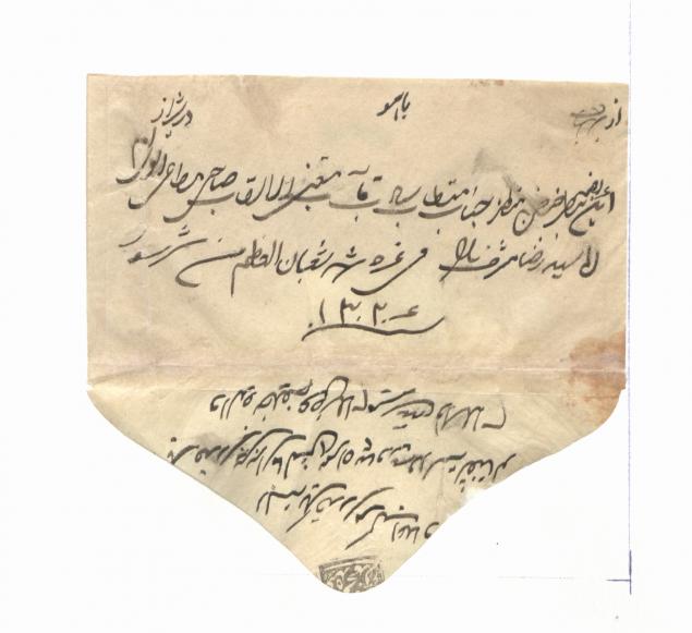 نامه ی محمد طباطبائی به حاجی سید رضا پیرامون شرح احوالاتشان در بهبهان و تقاضای خرید اجناس درخواستی به تاریخ 1326ق و خط شکسته