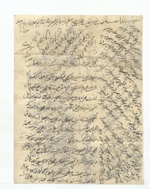 نامهای از محمدصادق بن میرجعفر از شیراز به میرجعفر بهبهانی پیرامون ارسال وجه و تنخواه به خط شکسته تحریری و فاقد تاریخ.