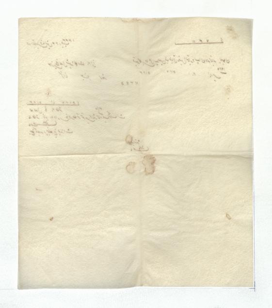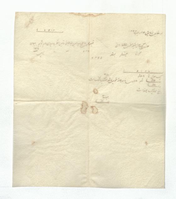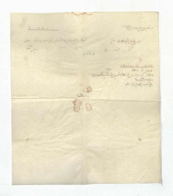 نامه‌ای از منچستر به حاجی سیدحسین تاجر بهبهانی در خصوص ارسال کتیرا به انضمام فاکتورهای فروش پارچه به تاریخ 1343ق . خط شکسته.