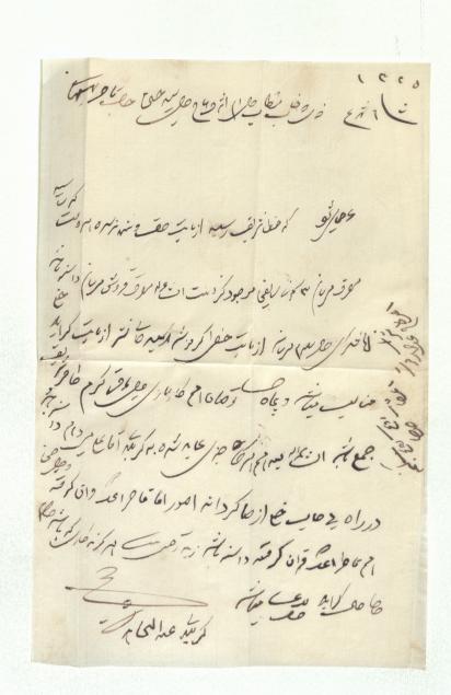 نامه کربلایی عبدالنبی به حاجی سیدحسین تاجر بهبهانی