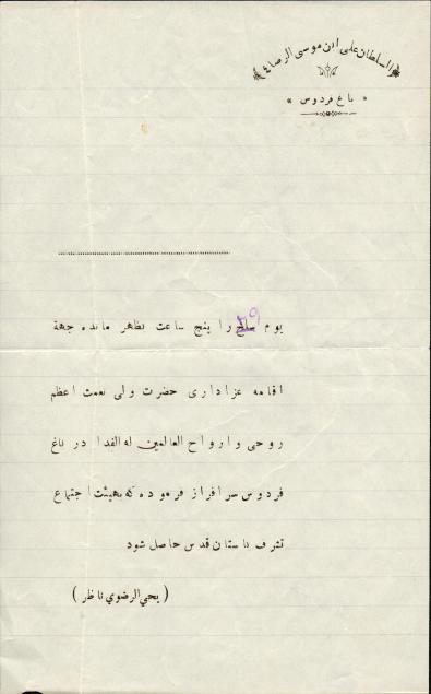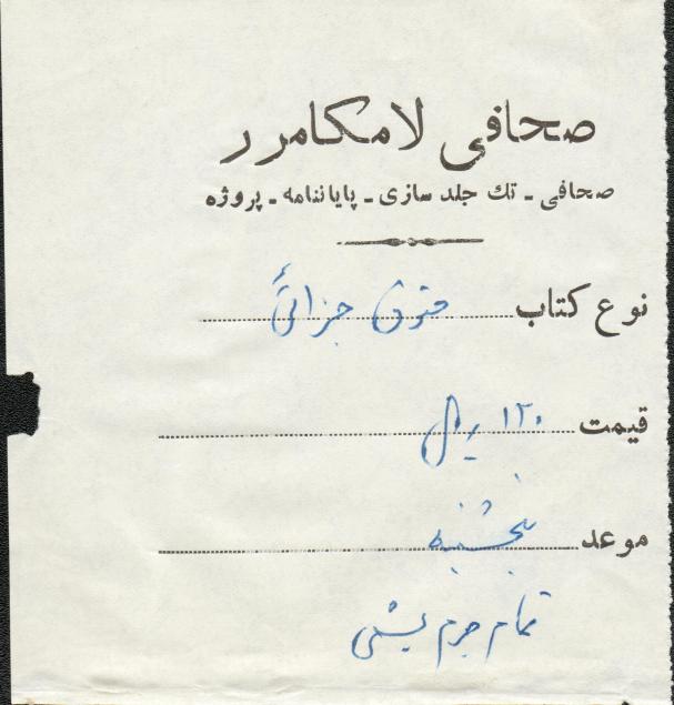 رسید صحافی، نامه احوالپرسی، دعوتنامه عزاداری 1309ق قاجاریه صفر 1193 قمری (قرن 12) - 15 شعبان 1342 قمری (قرن 14)