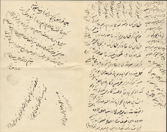 نامهای با مهر محمدصادق در خصوص ارسال گندم انبار حسنخان به آسیاب٬ فروش گندم نرجه و آرد نمودن آن جهت فروش و بدهی املاک به حکومت