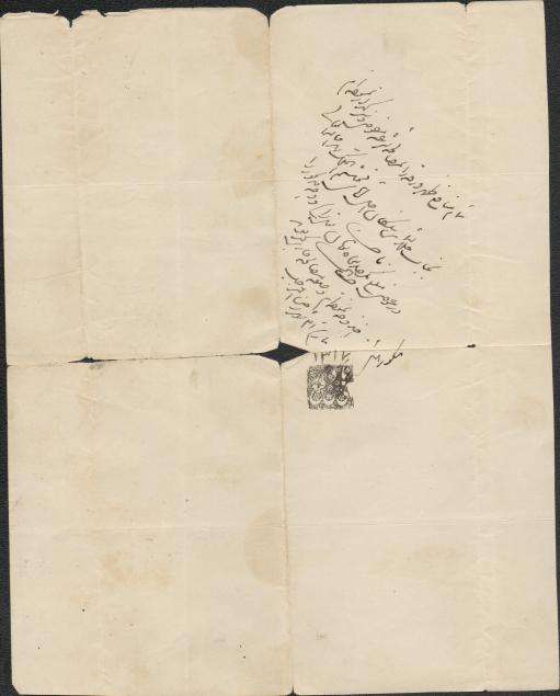 مصالحهنامه بین مشهدی حسنخان [بلوکباشی] با صدرالعلما در خصوص واگذاری بخشی از منافع حاصل از اجاره املاک محتشمالملک در قریه فشخام فومن و مصالحه بین هادی بن رفیع با محتشمالملک پیرامون تمامی منافع مصالحه فوق در ظهر سند از تاریخ ۱۳۱۶ق تا ۱۳۱۷ق