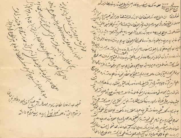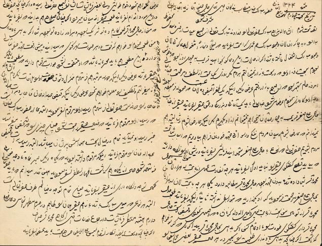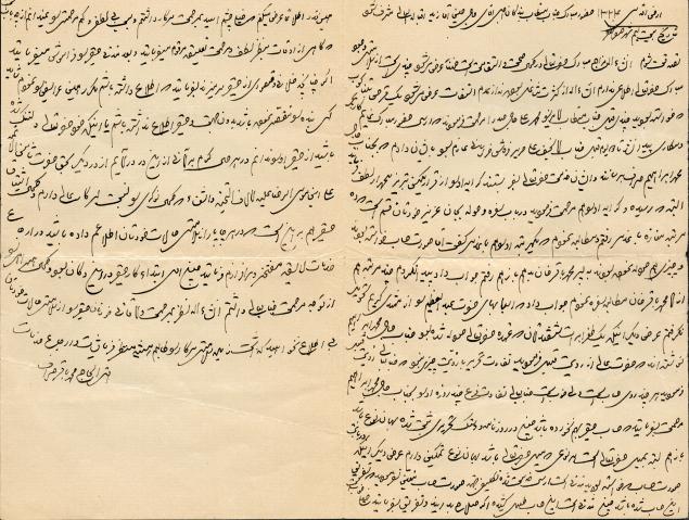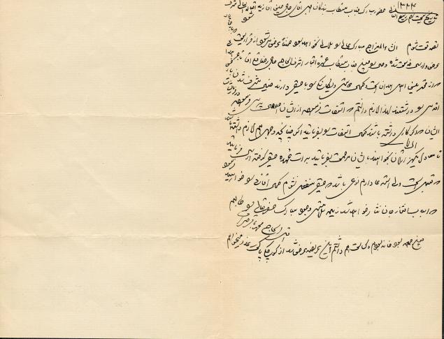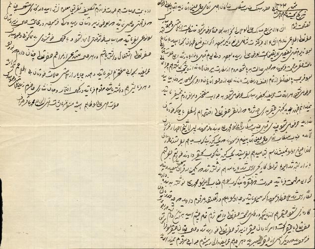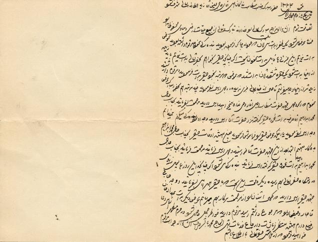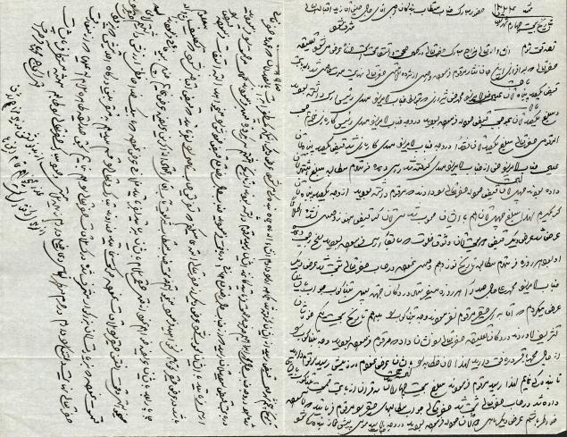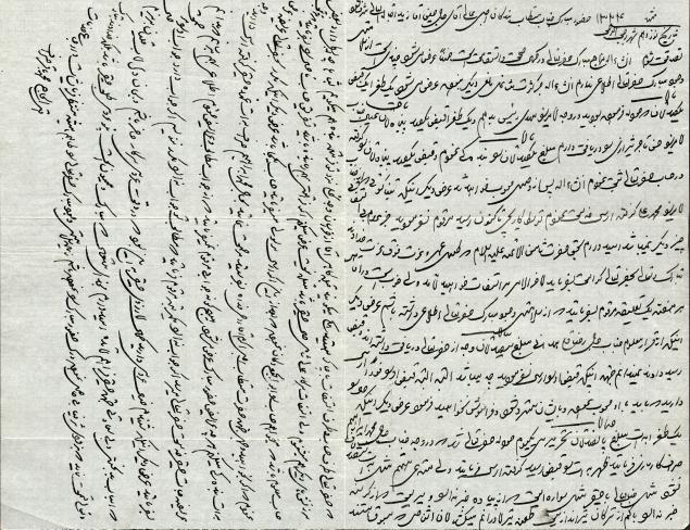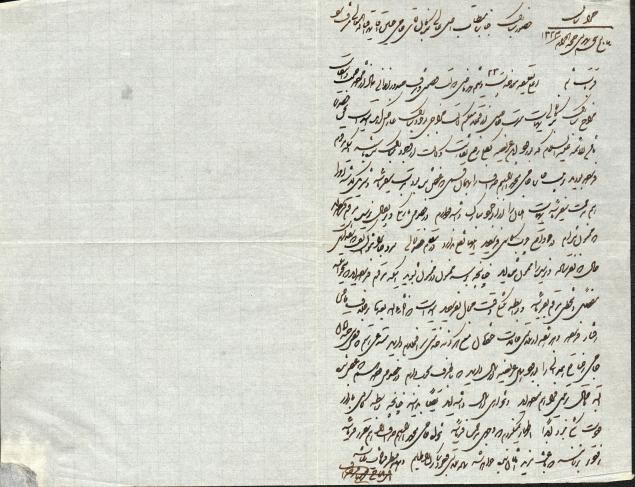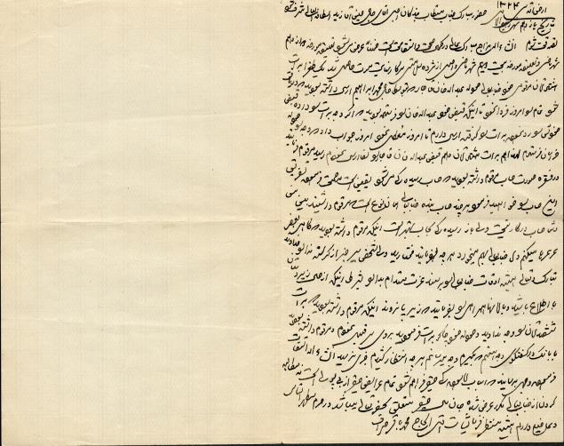 نامه محمدباقر صراف به حسین ملک درباره موضوعات مختلف 1324 ق قاجاریه صفر 1193 قمری (قرن 12) - 15 شعبان 1342 قمری (قرن 14)