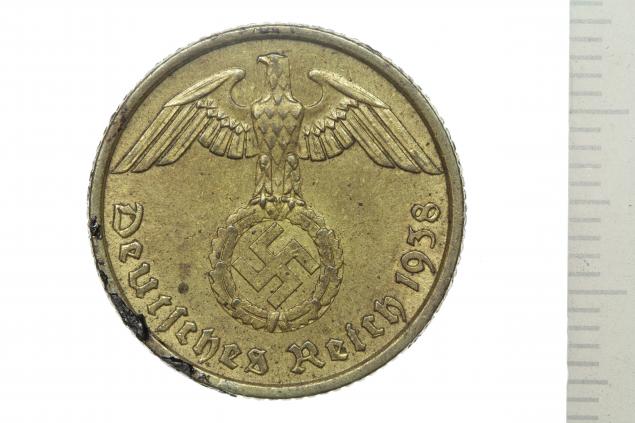 10 رایشپفینگ (Reichspfennig) آلومینیم- برنز رایش سوم آلمان، ضرب 1938 میلادی
