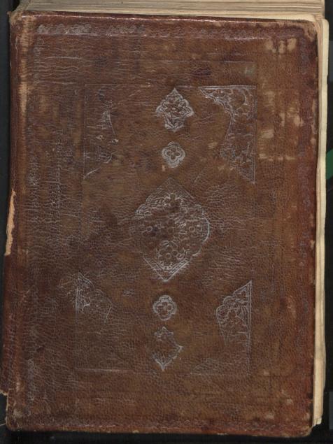 جلد میشن زیتونی ضربی با ترنج و سرترنج و لچکی و جدول گرهی