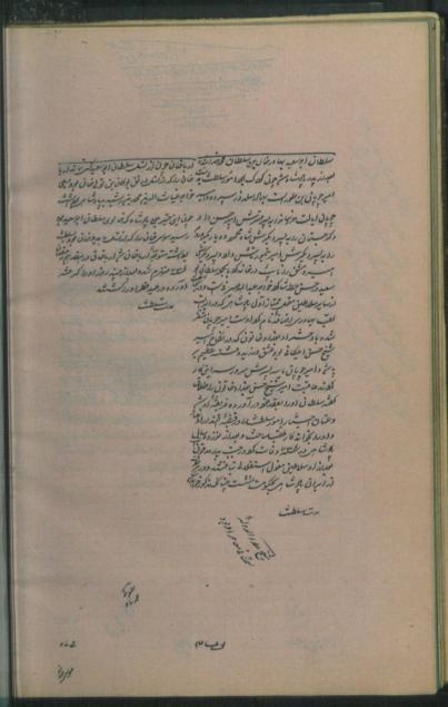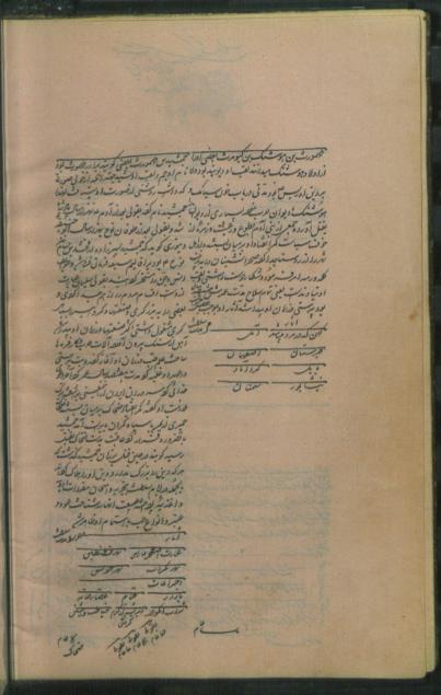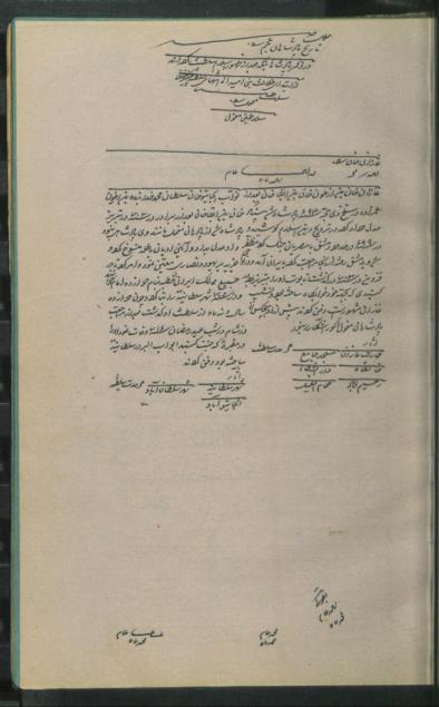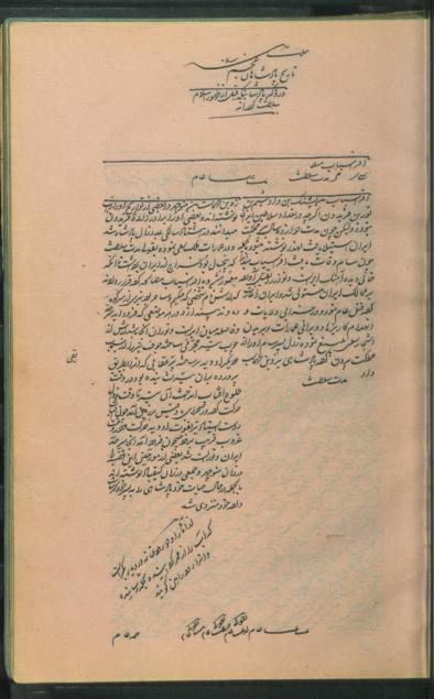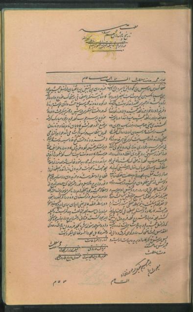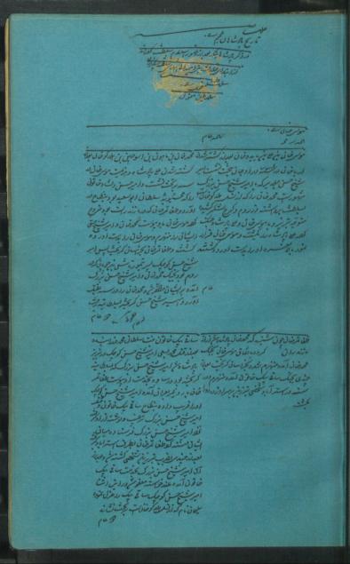 شکسته نستعلیق و سیاق سدهٔ ۱۳ق، ۸۶گ، مختلف السّطور، کاغذ فرنگی الوان، تمامی اوراق دارای سربرگ با علامت شیروخورشید زرّین، قطع وزیری کوچک، ۲/۱۴×۵/۲۱سم، جزوهای ۸برگی، جلد تیماج زیتونی لایی.
