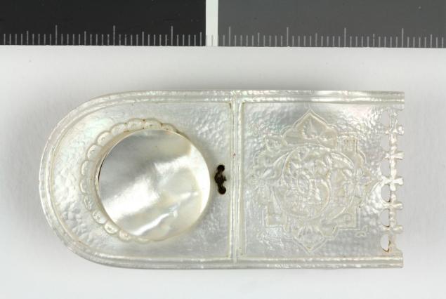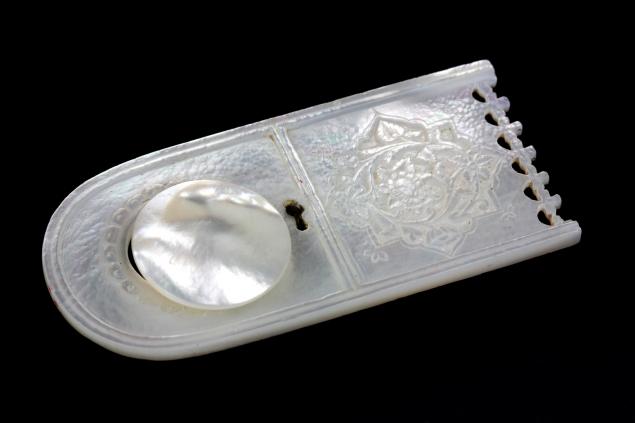 رویه دوات صدفی فاقد مخزن مرکب بوده و به عنوان مرکبدان در صورت وجود محفظه ایی برای نگهداری مرکب، سابقا مورد استفاده بوده است. در دفتر ثبت قدیم این اثر متعلق به قلمدان شماره ۱۶۹ می باشد.