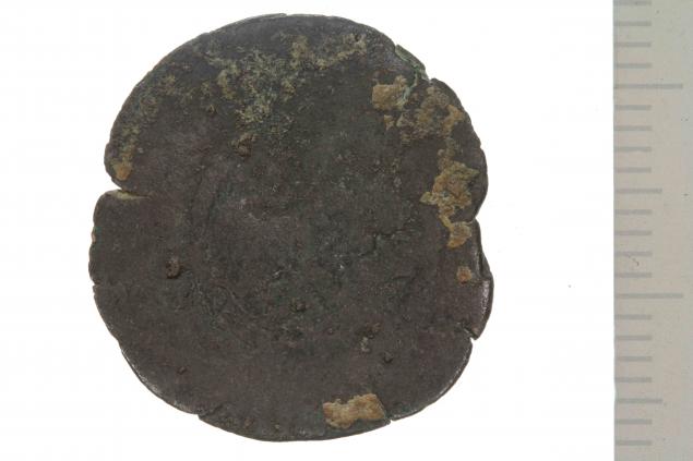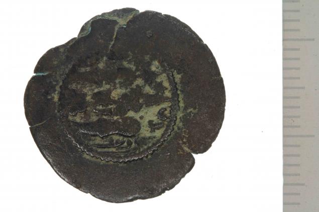 سکه از جنس آلیاژ مس (مفرغ) احتمالا خسرو اول ساسانی ساسانیان ۲۲۴ میلادی (قرن ۳) - ۶۵۱ میلادی (قرن ۷)