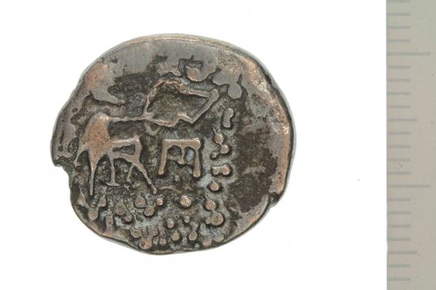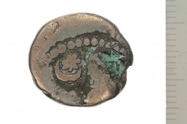 سکه از جنس آلیاژ مس و نقره، فرهاد چهارم اشکانی، ضرب ۳۲ تا ۷ قبل از میلاد، احتمالا میثردات کرت